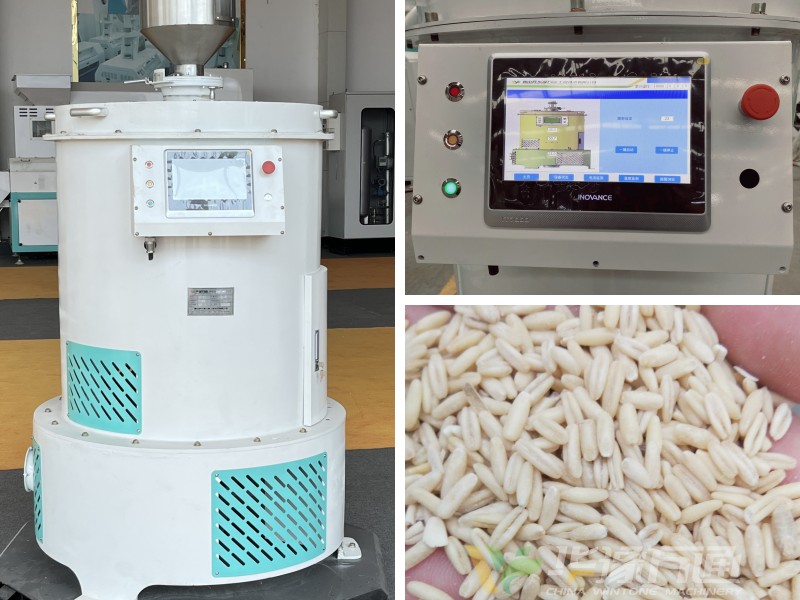 上屆展會,華豫萬通在外場展出了四款燕麥加工設備,其中包括華豫萬通自主研發生產的智能燕麥離心脫殼機,該機擁有研發專利,通過變速調節喂料速度與撞擊脫殼強度、適應不同品種燕麥脫殼,在生產線上可連續穩定運轉。