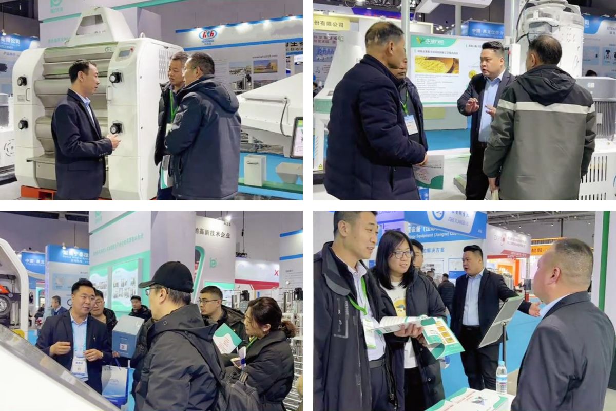 展臺上,華豫萬通展出的智能玉米揉搓脫胚機、智能玉米胚芽搓光機、智能玉米選胚機、氣動伺服磨粉機等玉米提胚制低脂玉米粉核心設備,以高品質的外觀、高精尖的技術吸引了眾多參觀者的目光。該套核心設備能耗低、成品收率高、脂肪含量低、灰分低、綠色環保,可滿足葡萄糖、發酵企業的原料應用。