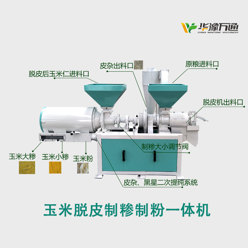 玉米脫皮拋光、制糝、制粉、風選于一體的玉米加工小型組合設備;